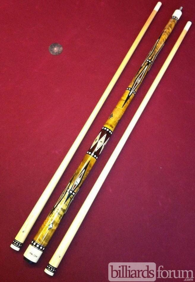 Hello, I am interested in buying a Meucci Diamond anything numbered 1 thru 100 and signed by Bob himself. Below is a picture of a the cue. This particular one is #6 which is owned by Val Beesley. I hope he does not mind me using the image. I realize these are collector items and they do not go for sale very often but I also know that even collectors can have hard times and are forced to sell some things. If you have one or know of someone that may be willing to give up one let me know. Thanks