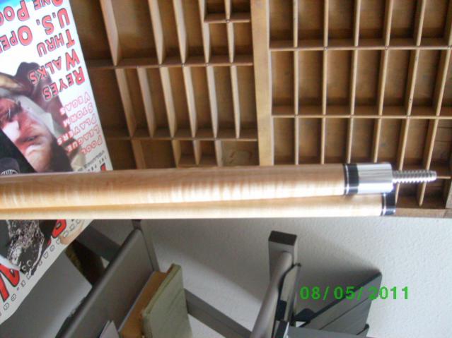 I hope the buyer enjoys the cue. Myron is a super guy and makes a real nice cue. That highly figured Maple is characteristic of Myron cues. Shafts are straight tight grain, high pitch and ping -backbone and feedback. Like I say-I like them.