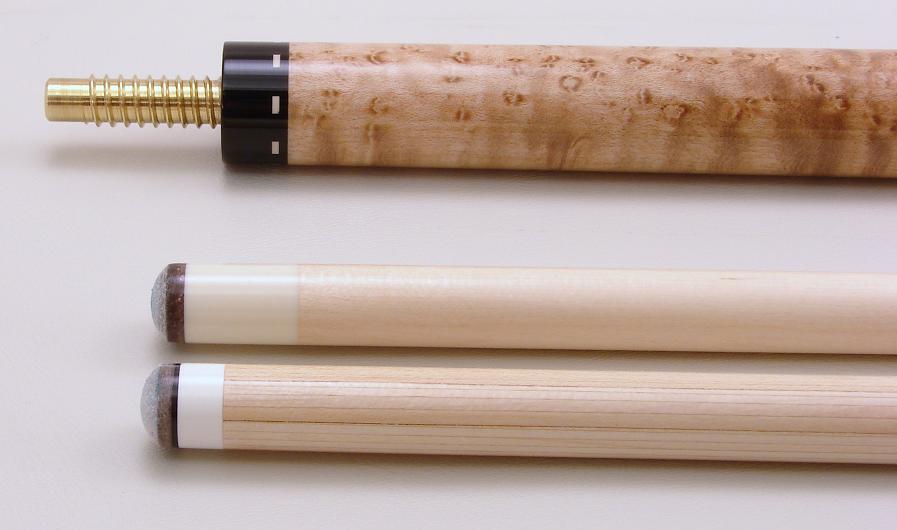 I've had this dufferin for a bit, and it's old Canadian stock from a trade with another member a while ago. Recently then I had my cue guy taper the shaft to 12mm w/a billiard/pro taper combo, install a westinghouse Micarta ferrule, and a Kamui Medium tip. Also, the original butt was replaced with another 30 year old Dufferin butt in almost pristine condition, joints were faced to match. It improved the balance and shortened the cue to 57"