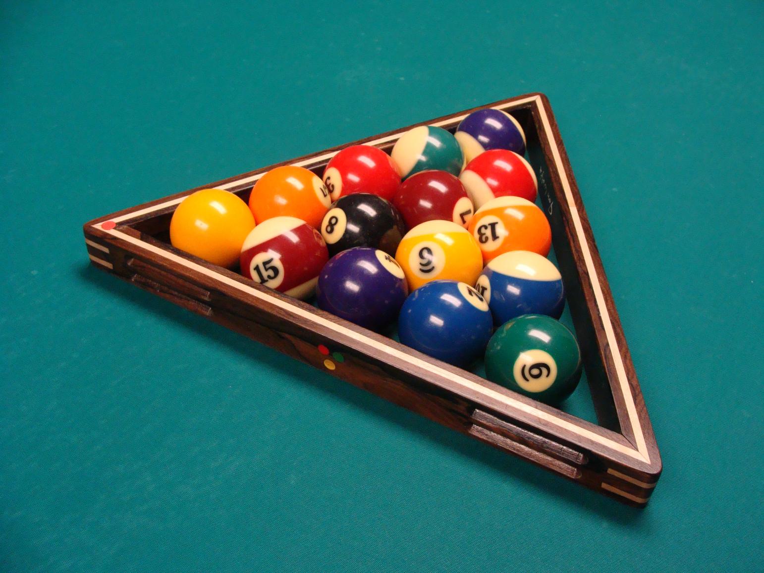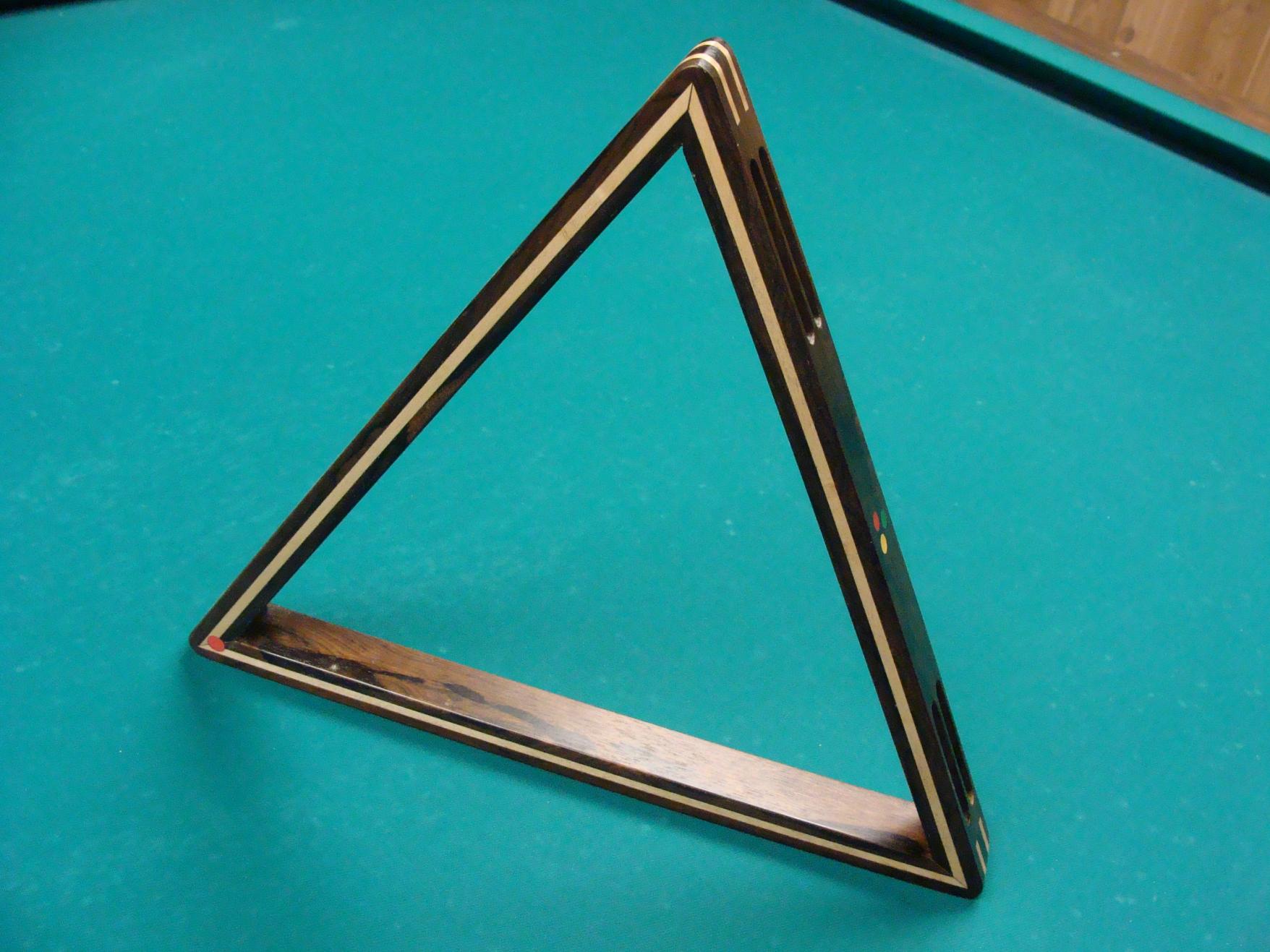 Up for sale is this beautiful ziricote triangle with hard maple center strips and corner splines. Adding to the beauty are colored epoxy accents on all three sides of the triangle. Laminated construction for rigidity and stability to provide many years of accurate ball racking. The wood blanks are sawed into strips, reversed, and glued back together to relieve any wood stresses. Ziricote is a premier cue, guitar, and turning wood and has become increasingly hard to get. Most countries in Central America now ban the export of Ziricote. Experts believe it to be the best substitute for Brazilian rosewood.
